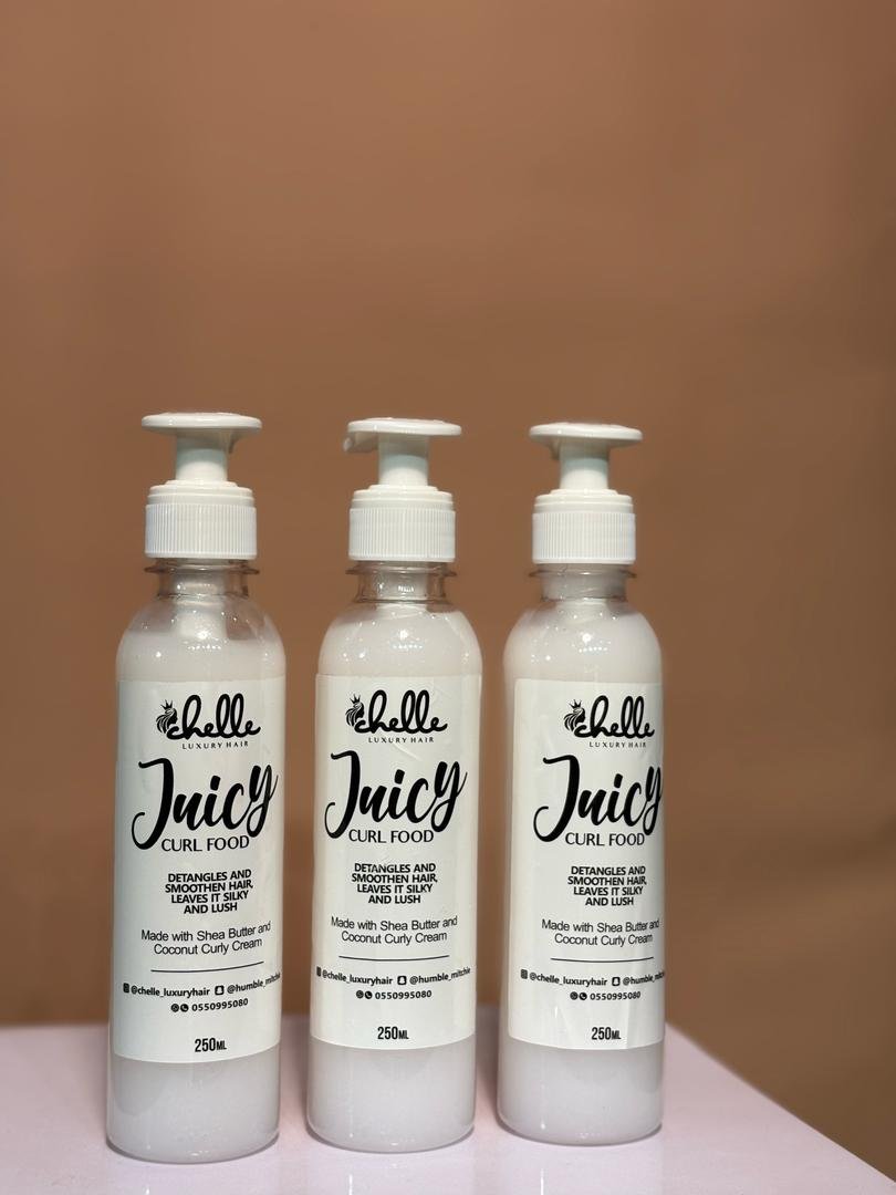 Juicy Curl Food by Chelle Luxury Hair is your go-to curl nourishment treatment, formulated to bring dry or frizzy hair back to life. Enriched with Shea Butter and Coconut Curly Cream, this deeply moisturizing formula helps to detangle, soften, and define your natural curls without weighing them down.